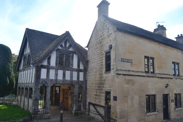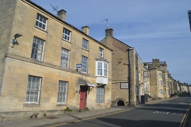 Edificios históricos del centro de Painswick, de piedra caliza local, que reflejan la vida comunitaria de la villa. La oficina de correos conserva su función desde hace generaciones, mientras que The Beehive ha sido un punto social clave para los habitantes: