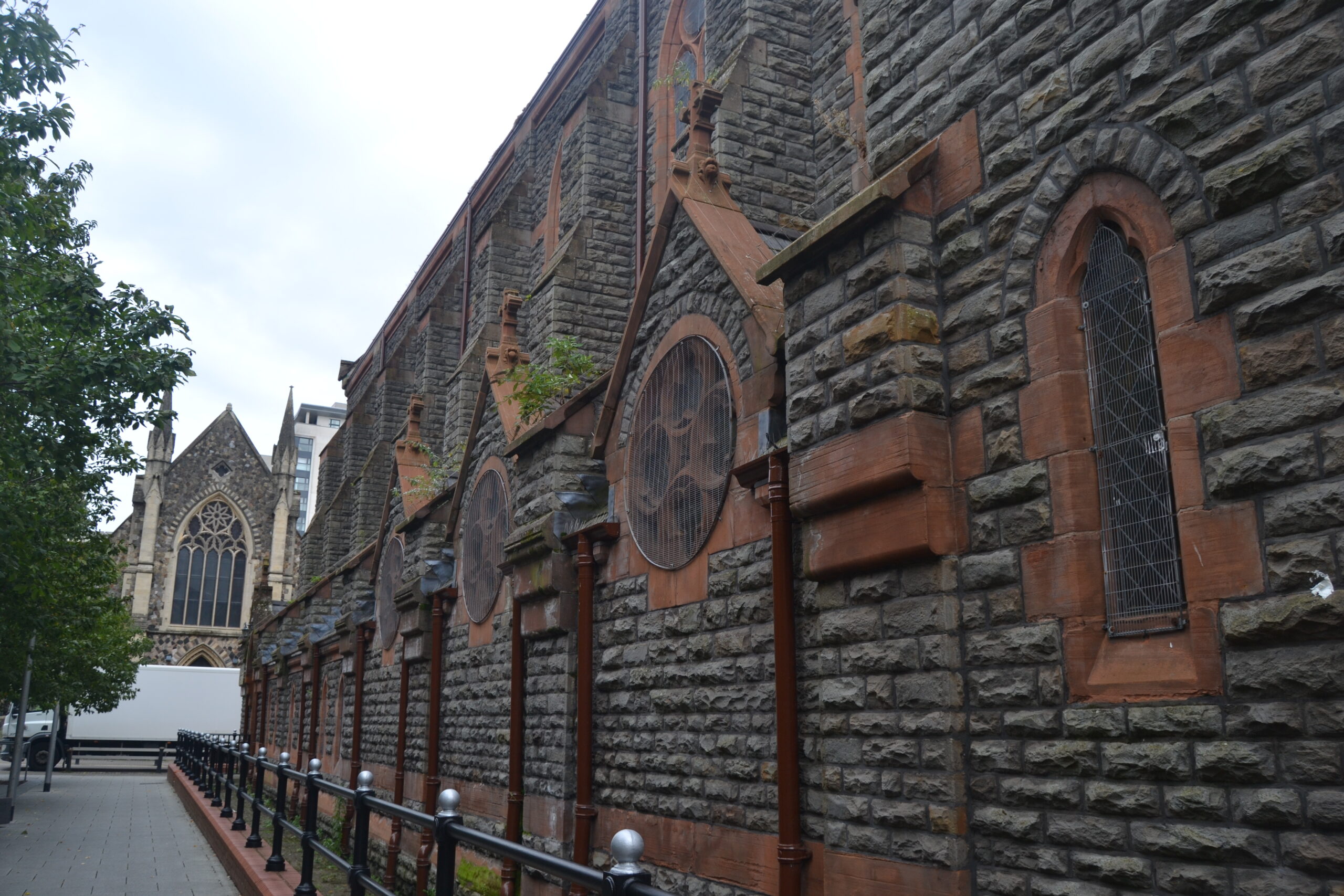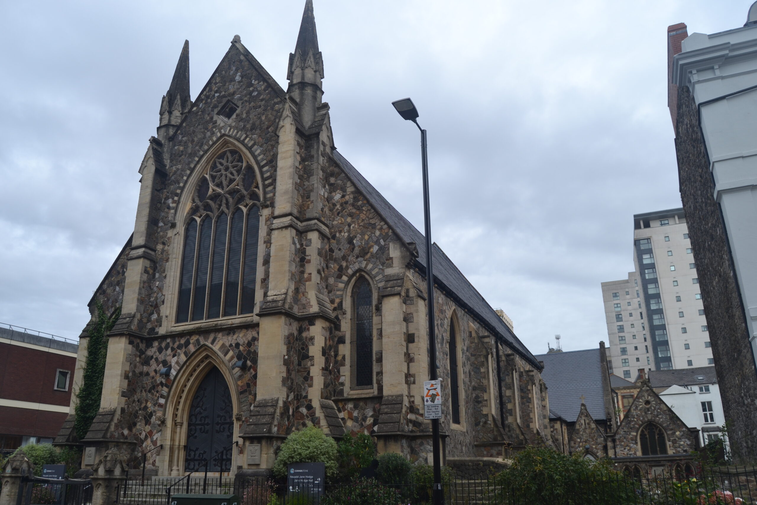 Catedral católica de 1887 en estilo neogótico, parcialmente destruida en los bombardeos de 1941 y restaurada en la posguerra. Es sede del arzobispado de Cardiff: