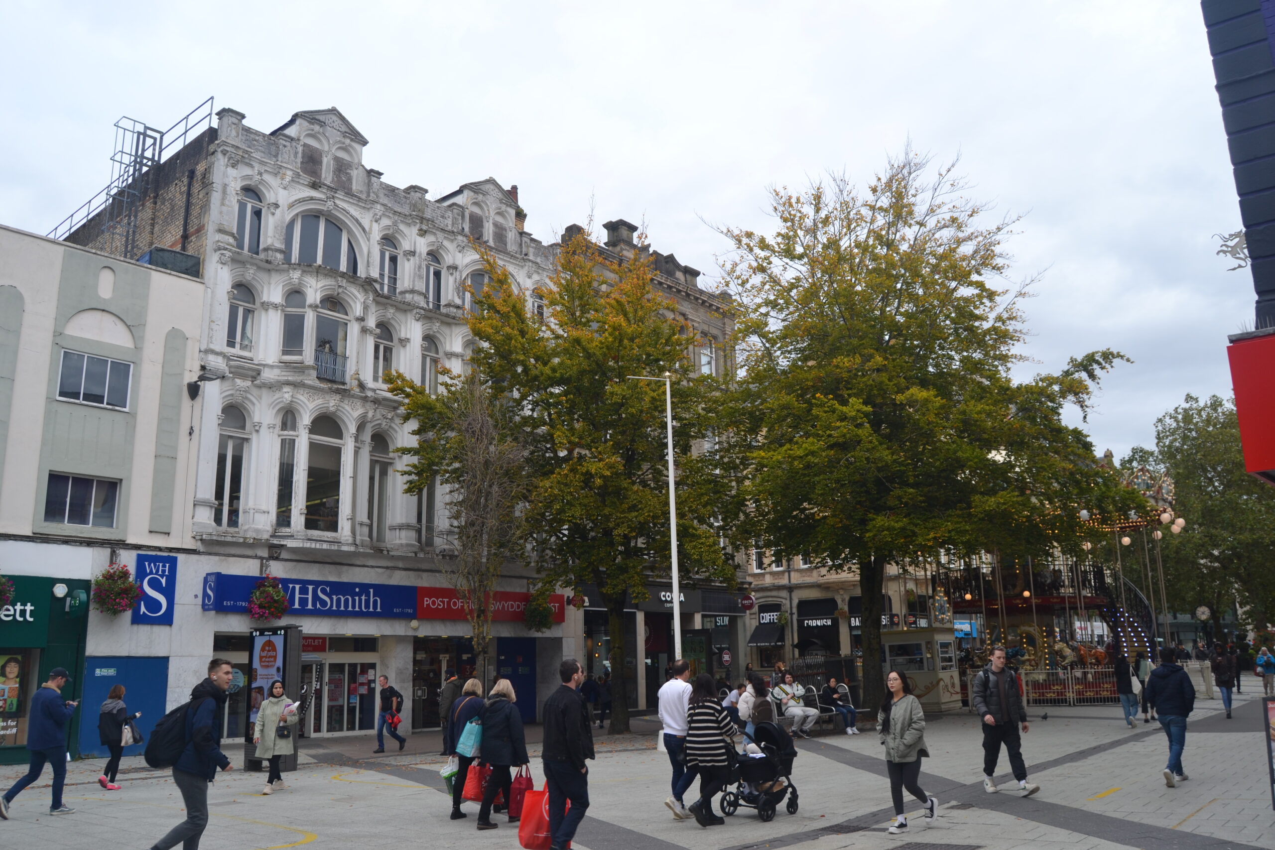 Principal calle comercial y peatonal de Cardiff, epicentro de tiendas, grandes almacenes y ambiente urbano desde el siglo XIX: