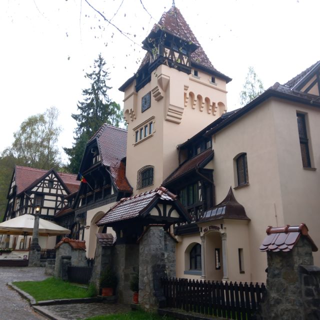Situada cerca del Castillo de Peleș, sirvió originalmente como residencia para el personal de servicio de la corte real. Su diseño exterior combina elementos del estilo neorrenacentista alemán con detalles funcionales, presentando una estructura simétrica, tejados a dos aguas y ornamentación discreta en las cornisas y ventanas. La fachada, de tonos claros, se complementa con marcos de madera oscura, creando un contraste elegante: