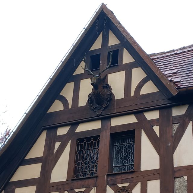 - Materiales y diseño: Las fachadas combinan piedra tallada con entramados de madera (fachwerk), creando un contraste visual que resalta la riqueza de detalles. Las torres y tejados puntiagudos aportan verticalidad y dinamismo al conjunto arquitectónico.