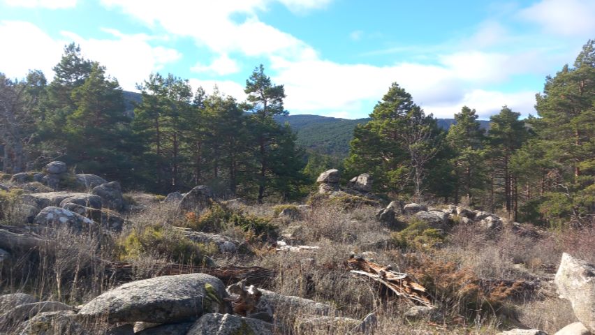 Hacia el final del recorrido, hay un bonito pinar de pinos silvetres, que tienen un aspecto muy similar a los de Valsaín: altos, rectos y bastante esbeltos, fruto de un crecimiento denso y en altitud:
