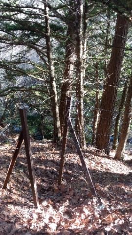 Tendrás que localizar este otro hueco en la valla, y justo enfrente se encuentra el tejo. Tendrás que cruzar otra vez el arroyo si quieres verlo de cerca: