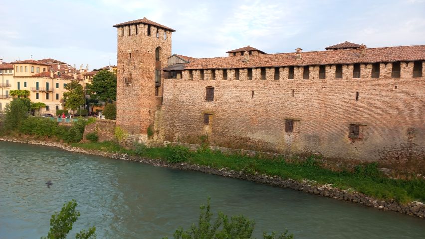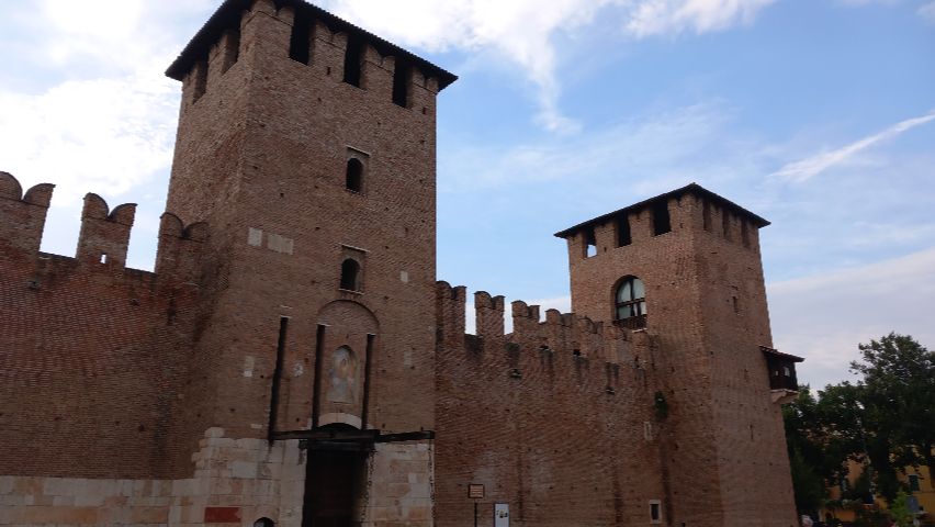 Castelvecchio fue construido a mediados del siglo XIV por Cangrande II della Scala como fortaleza defensiva y residencia militar. Su estilo gótico-militar combina muros de ladrillo rojo, torres almenadas y un trazado estratégico orientado hacia el río Adigio.