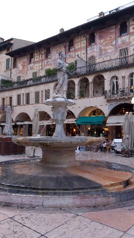 La Fuente de la Madonna Veronese, construida en 1368, es una de las más antiguas de Italia. La estatua central, que representa a una mujer coronada, es en realidad una escultura romana del siglo IV d.C. reutilizada durante la época medieval.
