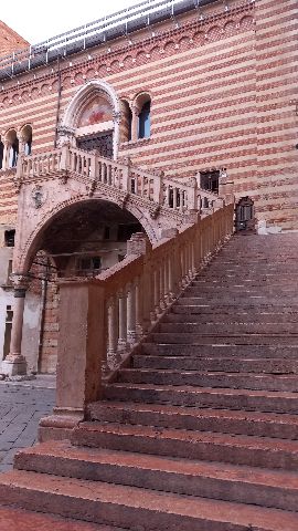 La Piazza dei Signori surgió en la Edad Media como centro del poder político de Verona. Está rodeada por palacios que representan siglos de historia: el Palacio del Consejo, el Palacio del Capitán, el Palacio de Cansignorio, el Palacio de Cangrande y el Palacio de la Razón, este último con el magnífico Patio del Mercado Viejo y su famosa escalera de mármol rojo (Scala della Ragione).