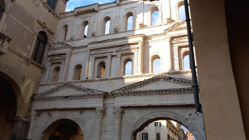 Originalmente situado en la Via Postumia, fue desmontado por los franceses en 1805 por considerarlo un obstáculo militar. Más tarde, piedra por piedra, se reconstruyó en su ubicación actual cerca de Castelvecchio.