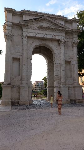 La inscripción superior indica su restauración en el año 265 bajo el emperador Galieno. Era la puerta que controlaba el tránsito por la Via Postumia y servía como aduana urbana.