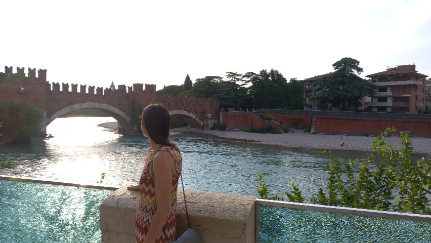 El Ponte Scaligero fue construido en 1354 junto a Castelvecchio como vía de escape en caso de ataque. Su estilo gótico destaca por sus almenas y sus tres grandes arcos, uno de los cuales fue el mayor arco de puente del mundo en su momento.