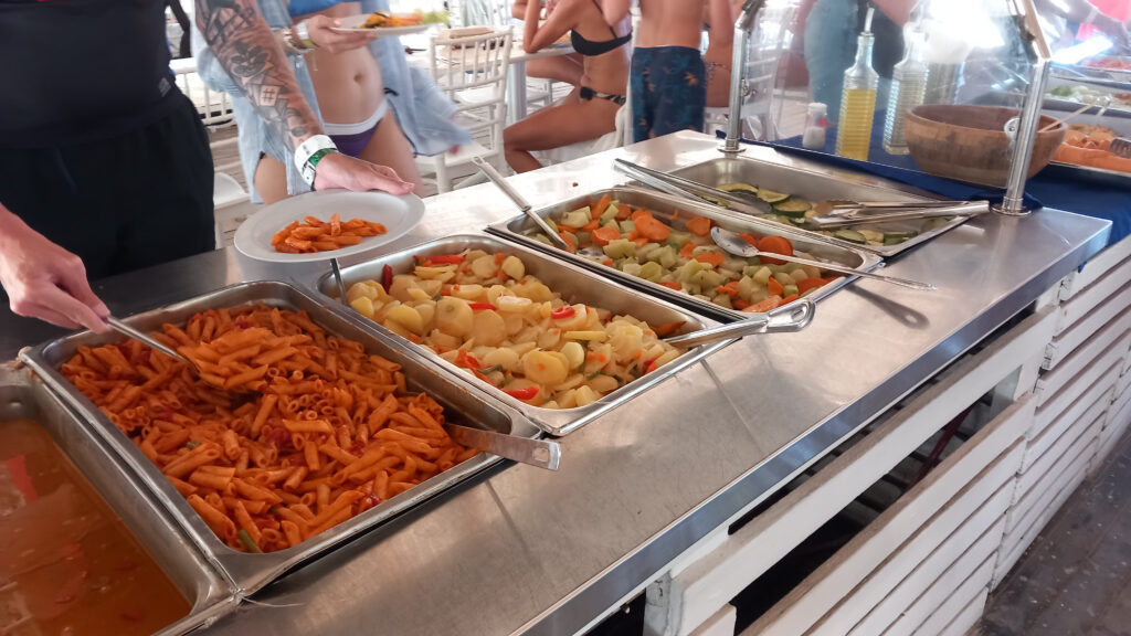 La parada en este paraíso es de 2 horas (incluido el tiempo para comer, por lo que recomiendo hacerlo rápido y no perder mucho tiempo). El almuerzo es de tipo buffet, con una parrillada de carne en vivo y paella: