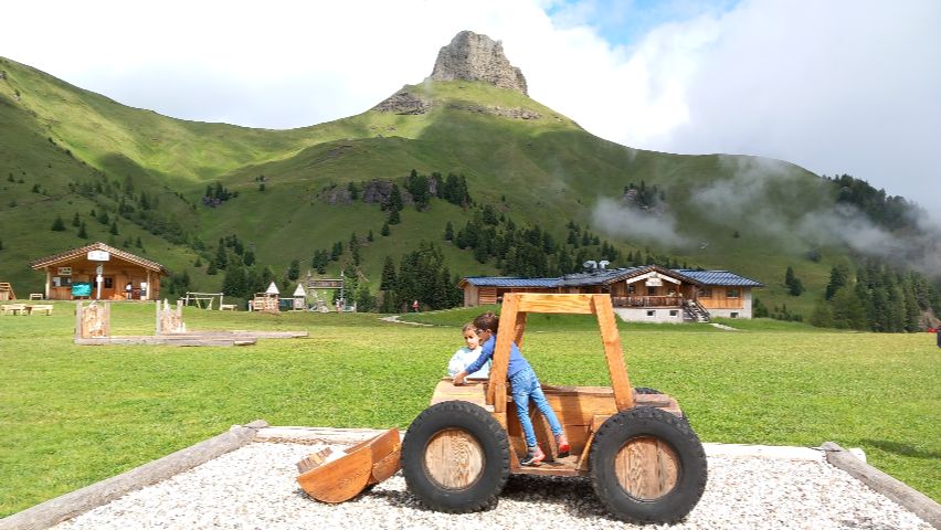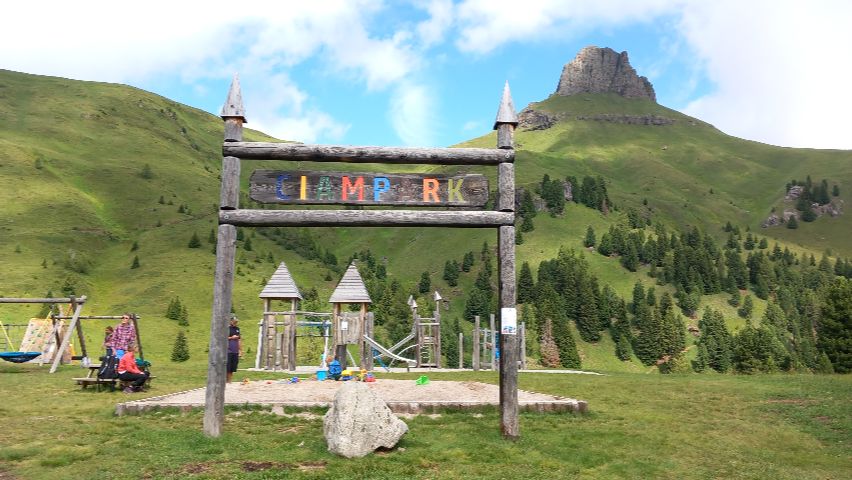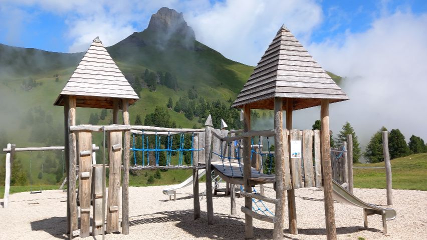 Dentro de Ciampac destaca Ciampark, un parque de aventuras familiar situado en altura, con juegos de madera, circuitos, toboganes y espacios para que los niños exploren con seguridad. Es un lugar ideal para que los más pequeños disfruten mientras los adultos se relajan con las vistas, haciendo de la visita a Ciampac una experiencia completa y muy recomendable en los Dolomitas: