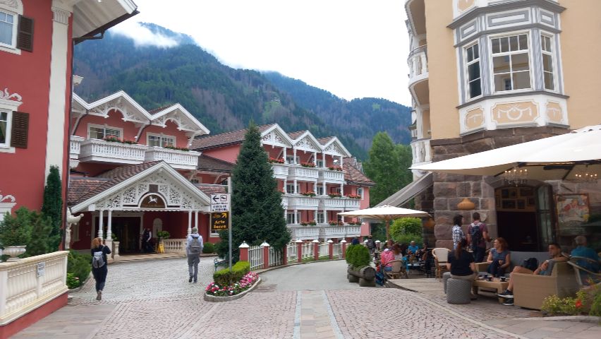 Además, Ortisei es conocido por su tradición en la talla de madera, visible en sus tiendas artesanas y esculturas repartidas por el pueblo. La oferta de restaurantes, heladerías y terrazas lo convierte en una parada muy agradable tanto para una visita de medio día como para pasar la noche y explorar la zona con calma: